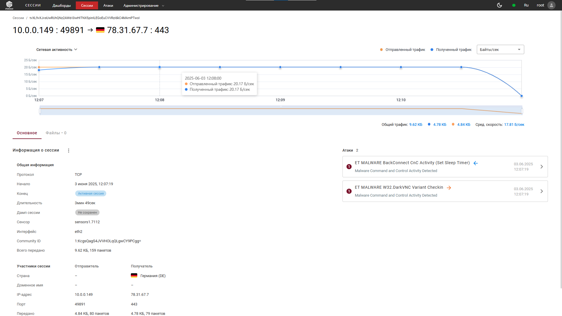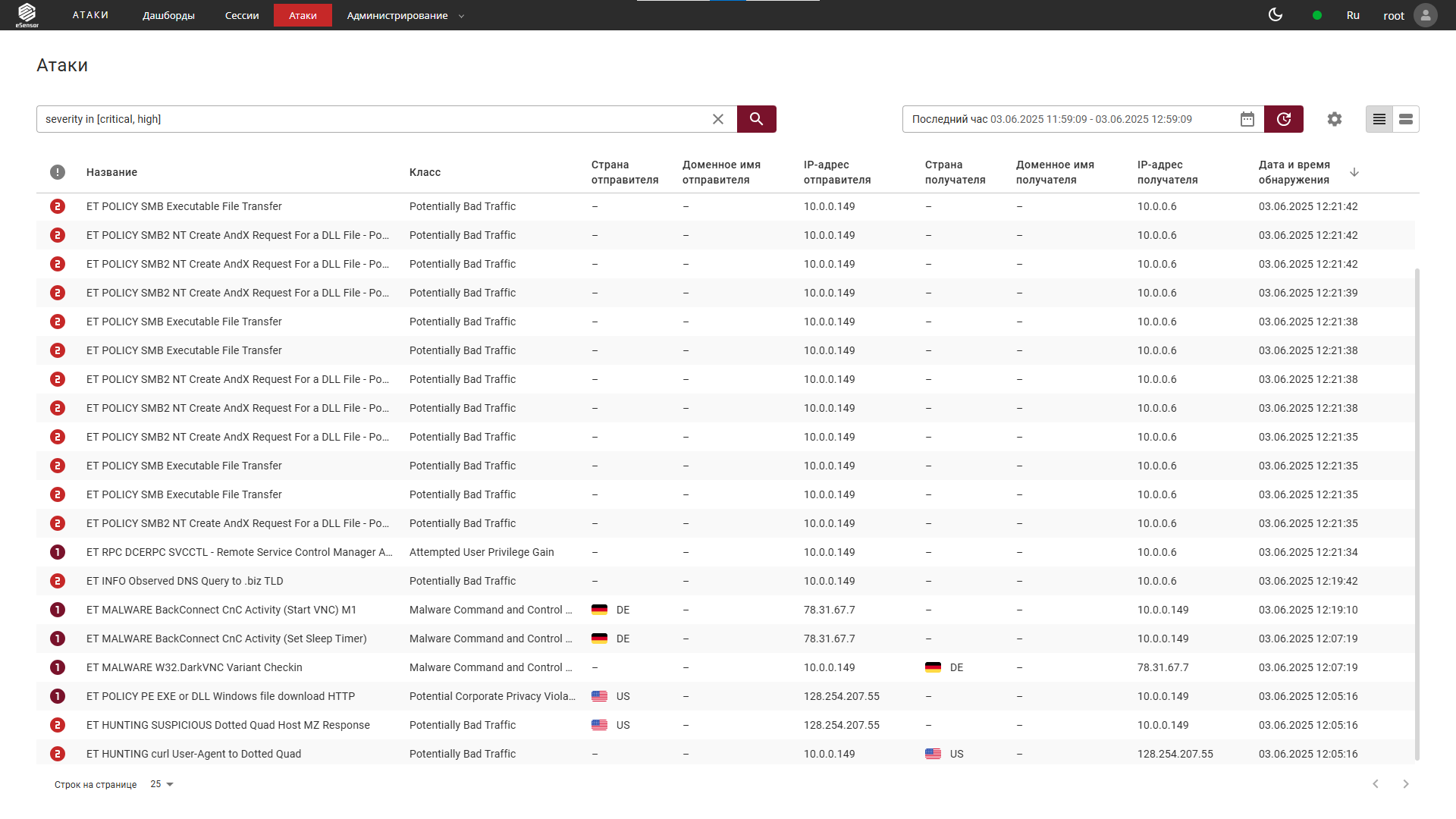 eSensor — система глубокого анализа сетевого трафика (NTA), которая позволяет обнаруживать сетевые угрозы, расследовать инциденты и контролировать соблюдение политик безопасности в инфраструктуре компании.